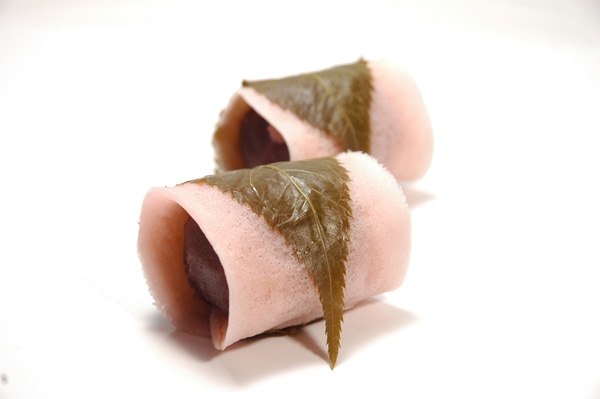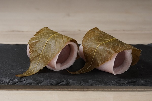 桜の葉の塩漬けが、餡の甘みと相性ぴったり。